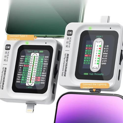 TESTER DOCK RICARICA YCS TNS 360 CON RILEVAMENTEO AUTOMATICO TYPE-C / LIGHTNING