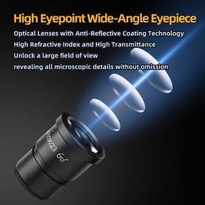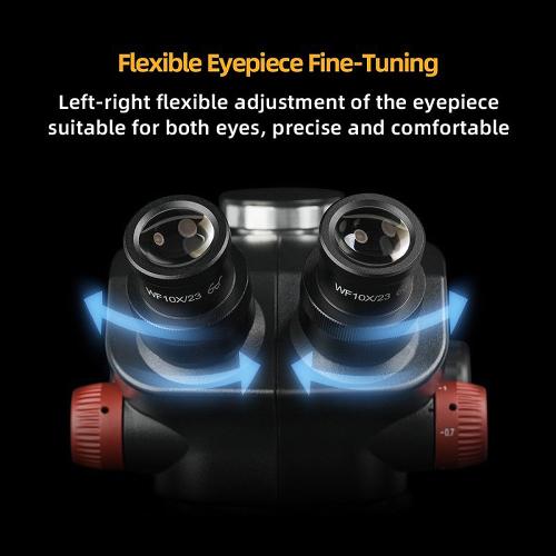 - Oculari Grandangolari WF10X/23: Gli oculari wide-field da 10X con un campo visivo di 23 mm offrono una visione ampia e confortevole, riducendo l'affaticamento degli occhi durante le lunghe sessioni di lavoro.