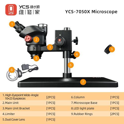 YCS 7050X Ideale per la microsaldatura su schede madri di smartphone, l'ispezione di circuiti stampati (PCB), la lavorazione di BGA e la riparazione di qualsiasi componente elettronico di piccole dimensioni.