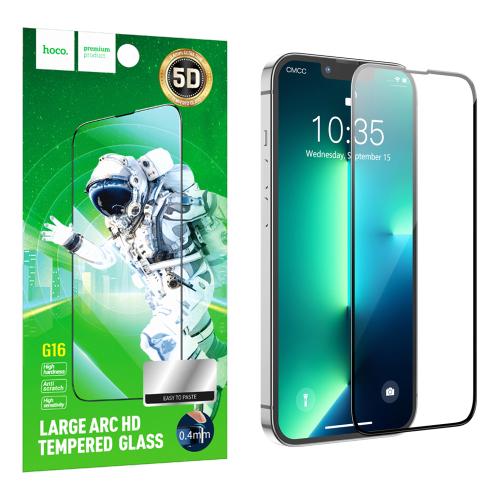 PELLICOLA TEMPERATA PER IPHONE 13 / 13 PRO / 14 / 16e CON BORDO NERO HOCO G16 0.4mm