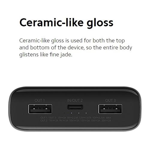 Grazie al trattamento di verniciatura UV, la cover integrata della Mi Power Bank 50W 20000 mAh risulta liscia al tatto. Con la lucentezza simile alla ceramica utilizzata sia per la parte superiore che per quella inferiore, il power bank brilla come giada pregiata.