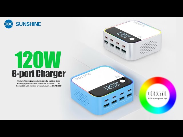 Relife Q2 120W Caricatore da Scrivania 8 Porte con Carica PD 100W e Illuminazione RGB Ambientale