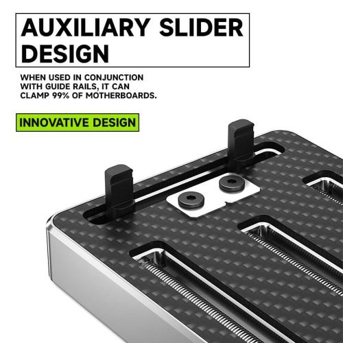 - Design Triassiale Personalizzato: Con tre assi indipendenti, il design triassiale a vite senza fine offre una varietà di configurazioni di fissaggio per adattarsi a schede madri di forme e dimensioni diverse, garantendo un'elevata applicabilità. Le tre guide possono essere combinate in modo flessibile per fissare il 99% delle schede madri di telefoni cellulari.