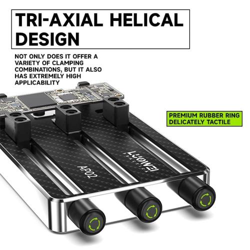 Luowei LW-AP02, una stazione di fissaggio triassiale rivoluzionaria, progettata per offrire stabilità e flessibilità senza pari durante le riparazioni elettroniche. Grazie alla sua struttura modulare e ai materiali di alta qualità, questo strumento è indispensabile per chiunque voglia lavorare con schede madri e componenti delicati con la massima sicurezza.