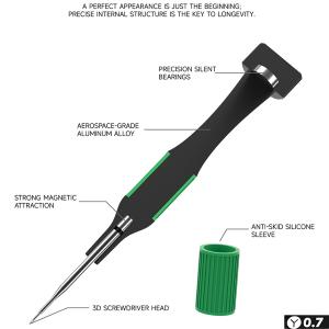 - La punta è magnetizzata per trattenere saldamente le piccole viti, semplificando le operazioni di rimozione e inserimento nei loro alloggiamenti senza il rischio di perderle.