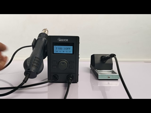 QUICK 715 è una stazione saldante da banco 2 in 1 con pistola ad aria calda di precisione e saldatore