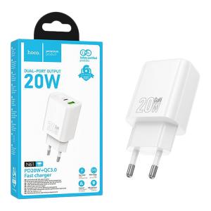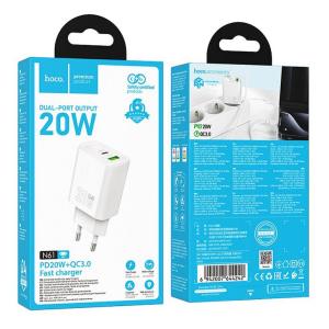 PRESA USB-A + TYPE-C HOCO N61 20W 3A BIANCO - BLISTER RETAIL